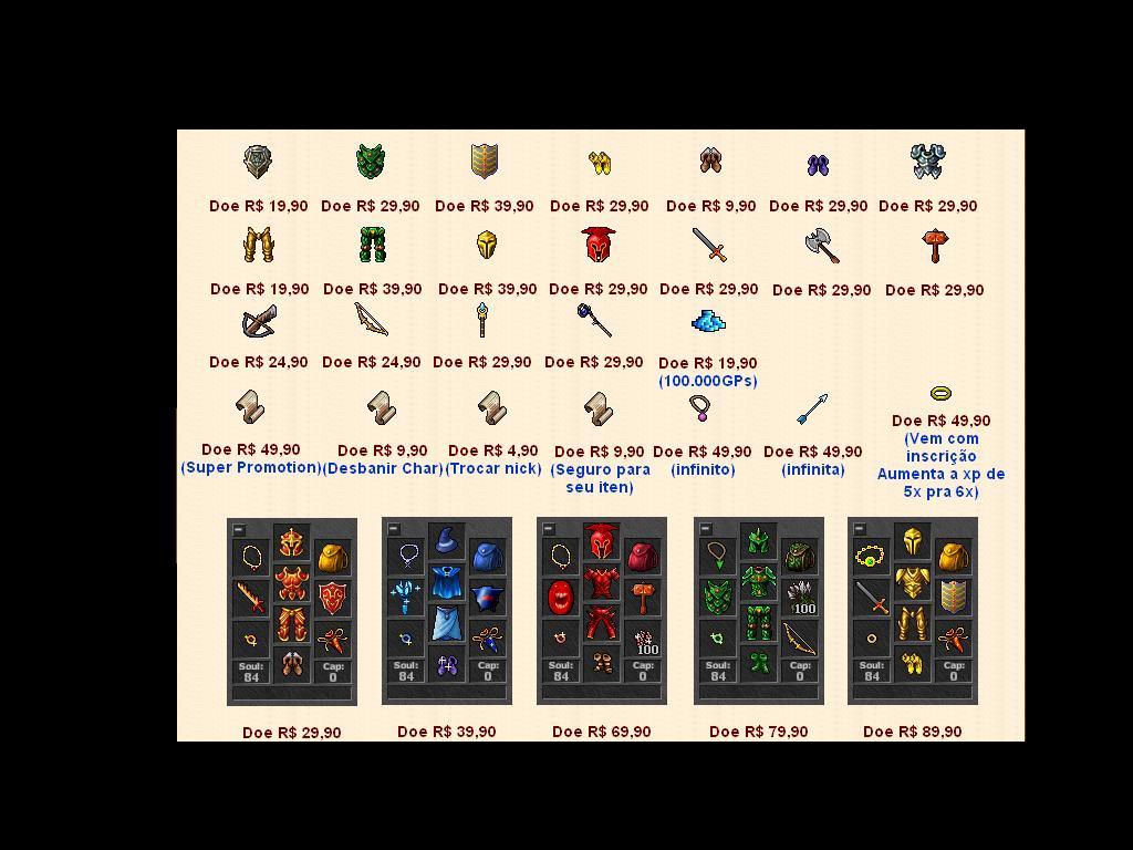 Você pensou em ter um AOL infinito? ou que tal um anel que aumenta xp? Super promotes,desbanimento de chares ou items muito raros para ter mais informaçoes sobre isso entre agora no site oficial do aldoria https://www.aldoriaotserver.xpg.com.br/